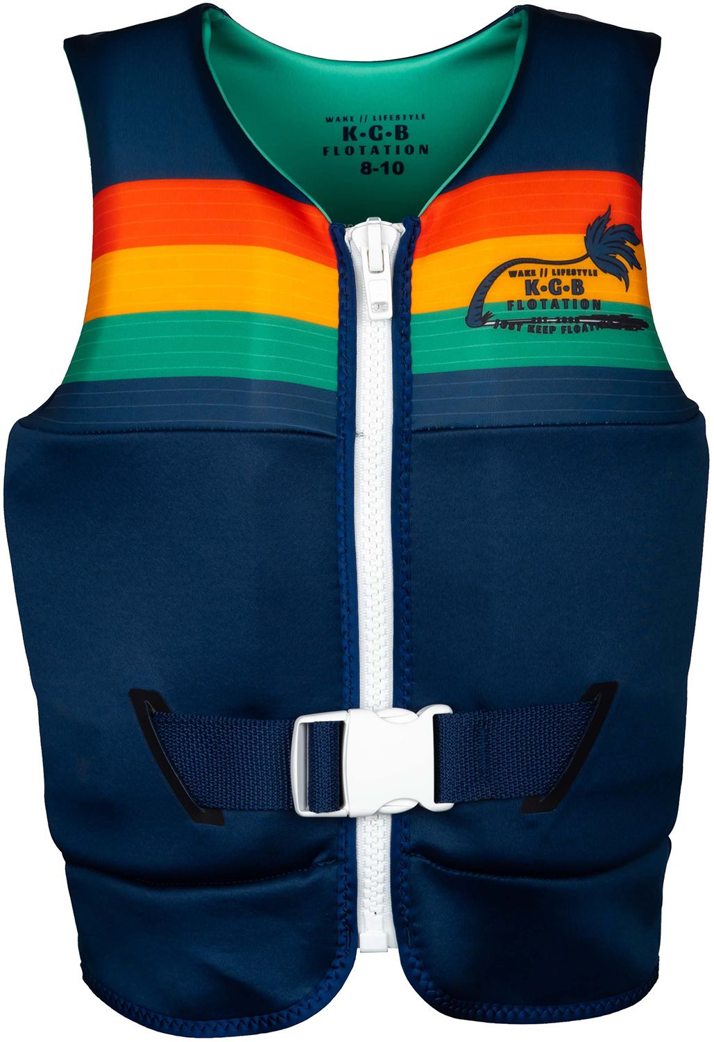 This KGB favourite is the only kids vest that has a side adjustment panel so it will last for years as your child grows. Made of our eco-friendly airprene, this vest is lightweight and comfortable which is key when it comes to kids wearing life vests. Our bright, sublimated graphics are always easy to see in the water, and the built-in safety strap secures the vest on your child and prevents it from riding up while they are in the water or out behind the boat.
